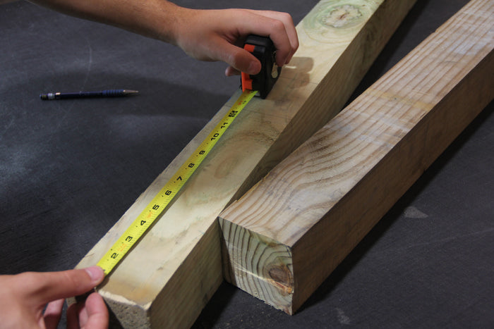 Mark all measurements before you cut. And remember, "Measure Twice, Cut Once". Make two posts. The vertical post should be 72 1/2"-84 1/2" (the longer length will allow you to set it deeper into the ground for more stability) and the horizontal post should measure 31 1/2".