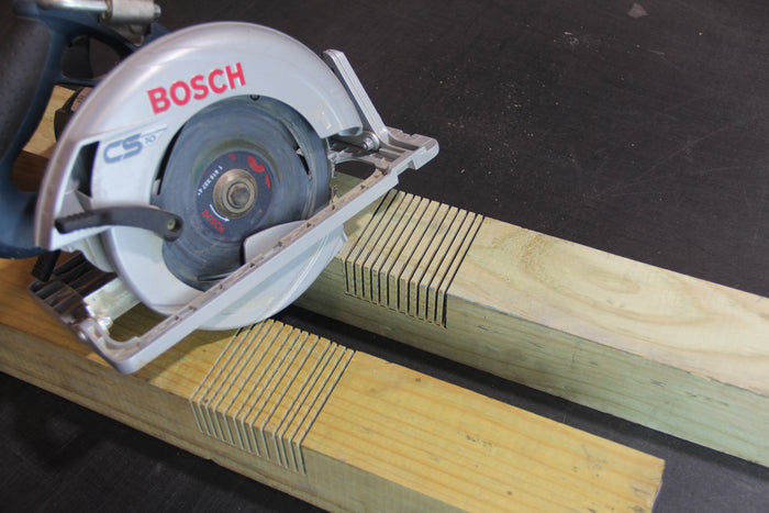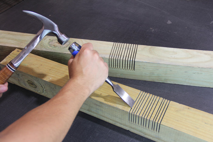 Make several cuts inside the joint area that you measured out in Step 1. The more cuts you make, the easier the excess wood will be to remove.