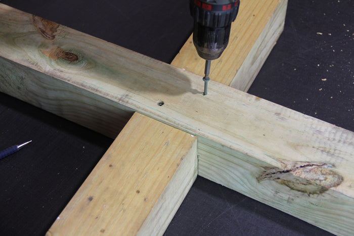 Assemble the 2 posts together and use the 3" deck screws fasten the joint together.