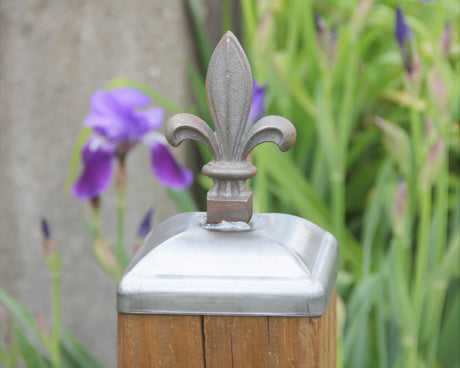 Our fence post toppers are made to bolt onto the top of any type of wood post. Although they don't add as much protection as our fence post caps, they still keep some water and bugs out while adding a very decorative metal touch to your posts! Instillation is easy for these. All you need to do is place them on your post and secure them with our color matching screws.