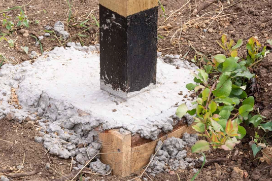 Fill the bottom of each hole with concrete mix or gravel to provide stability and support for the posts. Set the posts into the footings, checking for plumb and alignment as you go. Allow the concrete to cure according to the manufacturer's instructions.