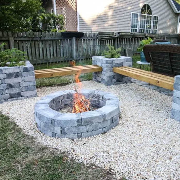 Firepits are really easy to make! You can use any type of rock or blocks to get the perfect look! We love the modern look that these cinder blocks make and it would match any gravel or paved patio! You can also make an cool bench surrounding the pit with more blocks and wood beams!