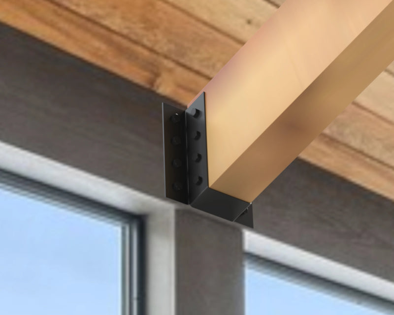 Our knife plates are made to be almost completely hidden. Designed for an easy installation of a joist or beam to sit up against the side of a post. This option does require a few extra cuts to the beam.