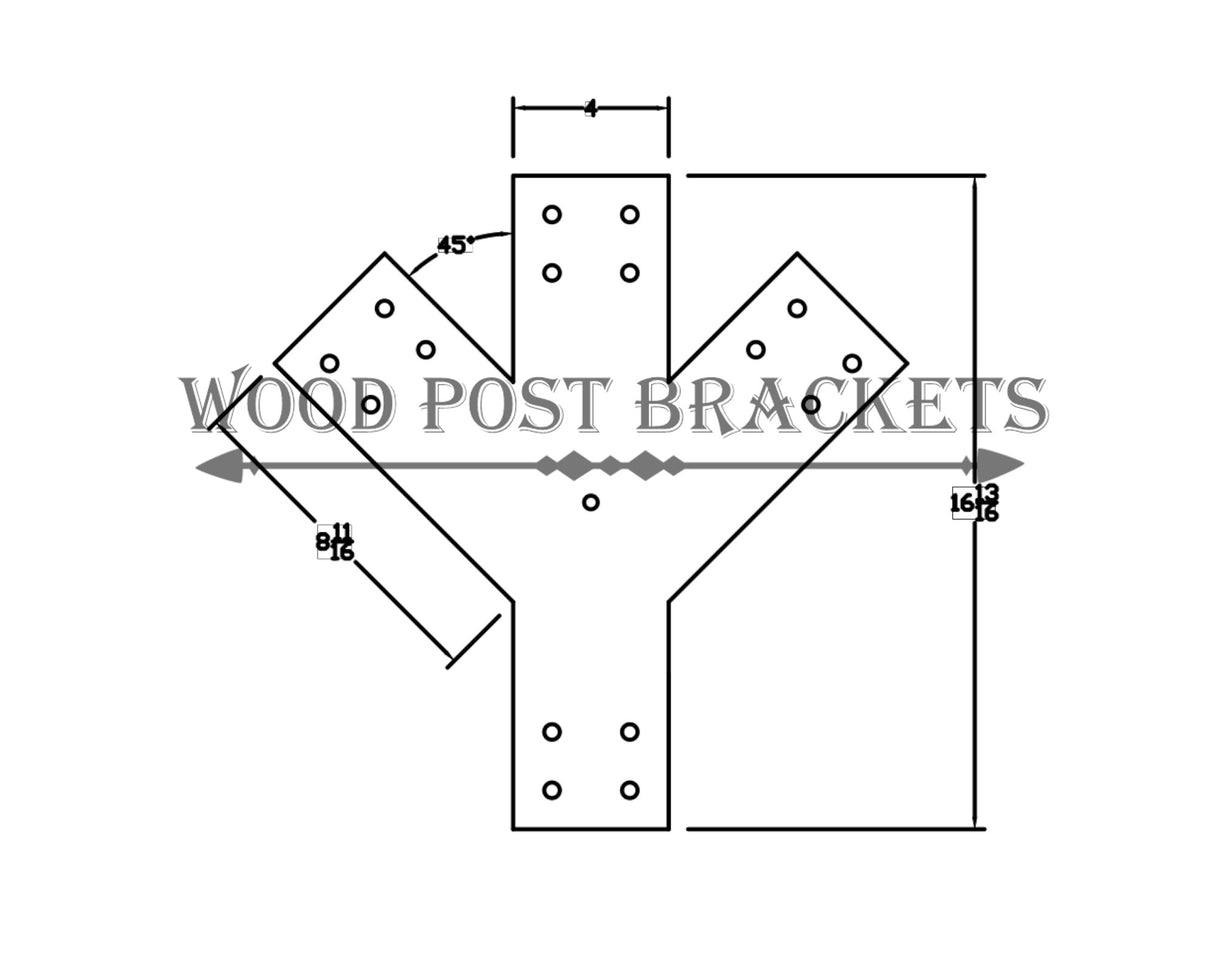 Support en Y pour pieds de poteau de 6 po à 45 degrés avec support central