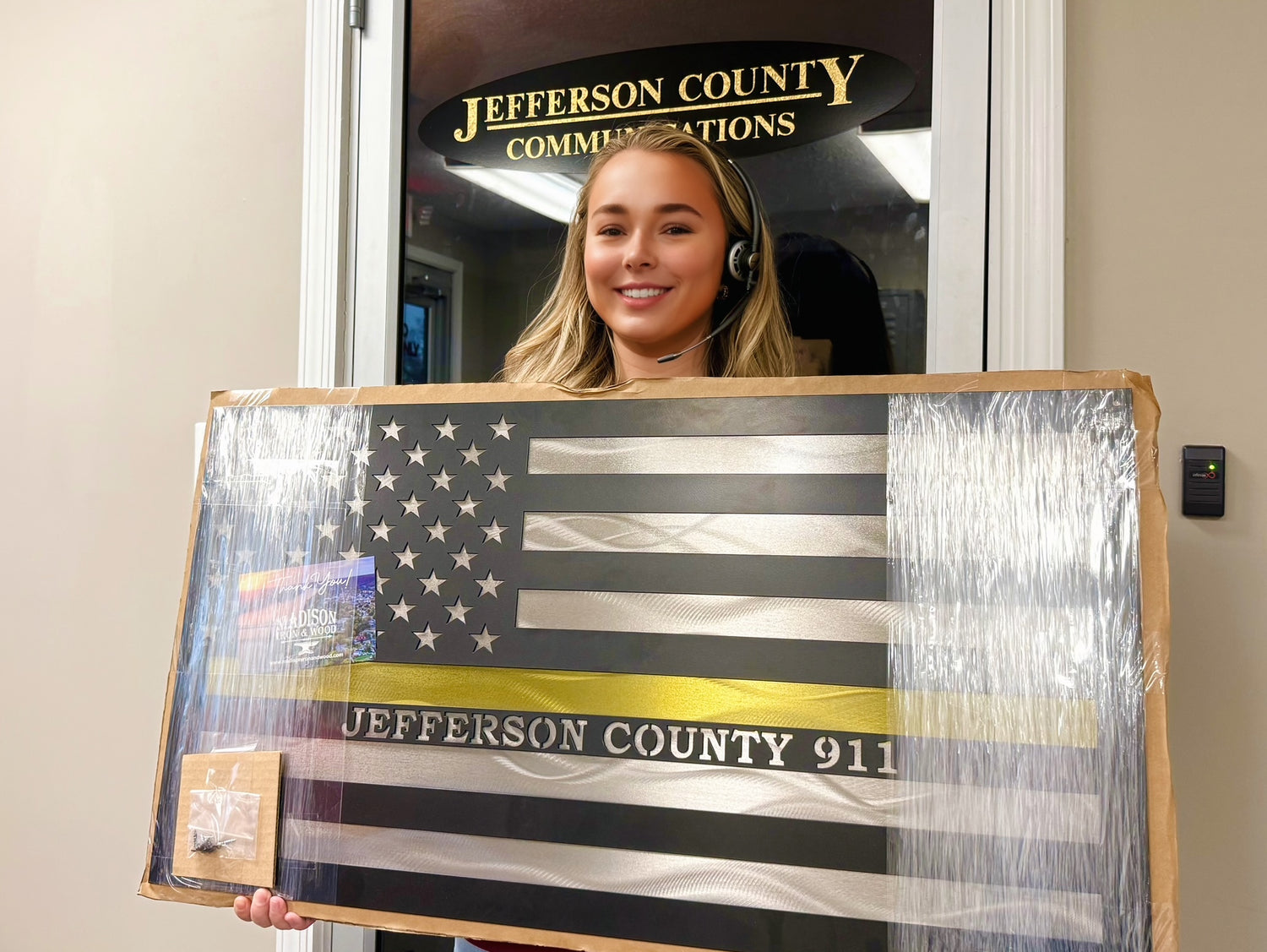 The top layer is a powder coated blacked out American Flag with "PROTECT AND SERVE" on one of the stripes. This can be changed if desired and we can add different things to another stripe if desired like "SGT THOMPSON" or whatever you would like to make it special. These are made to order so we have a lot of flexibility in this.