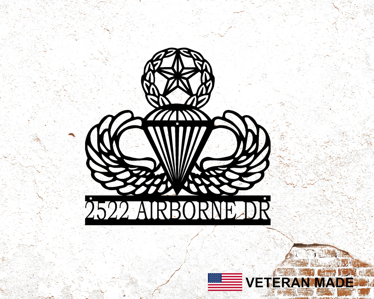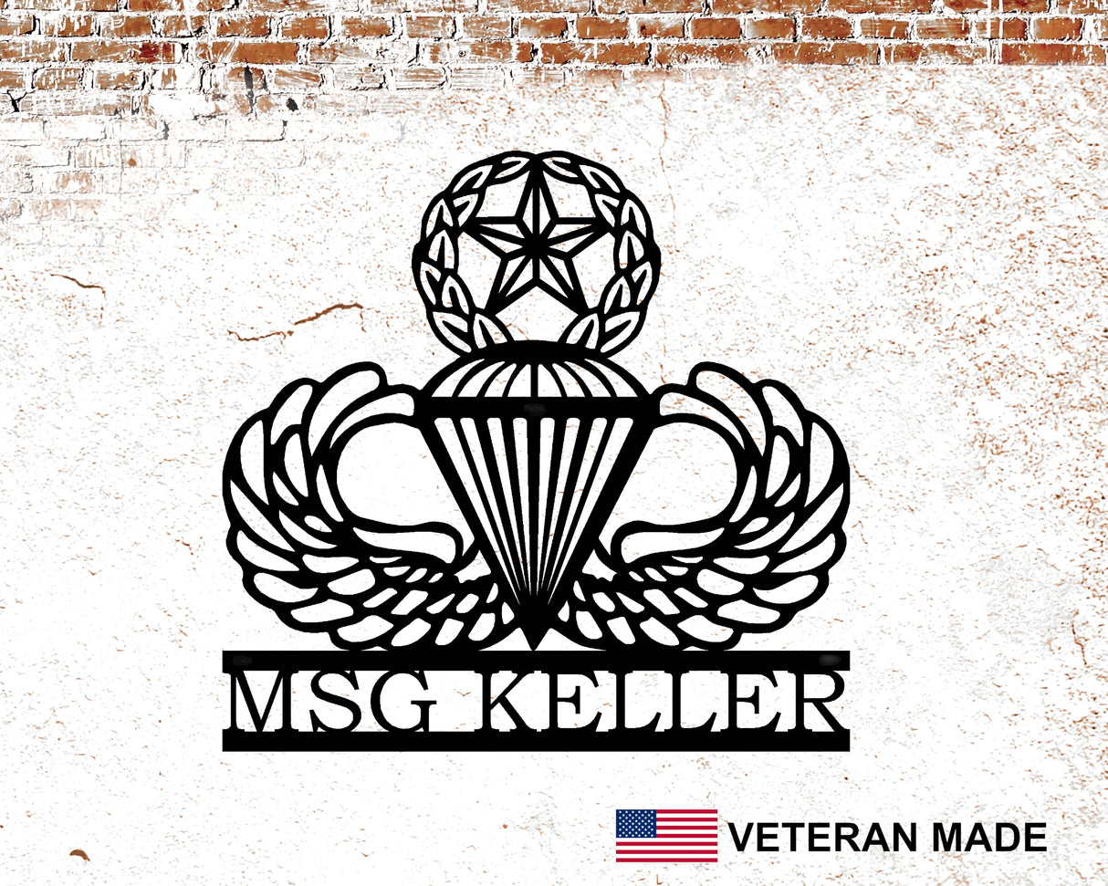 Airborne Master Parachutist Wings Panneau en métal personnalisé avec grade et nom