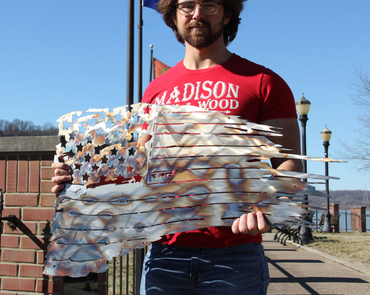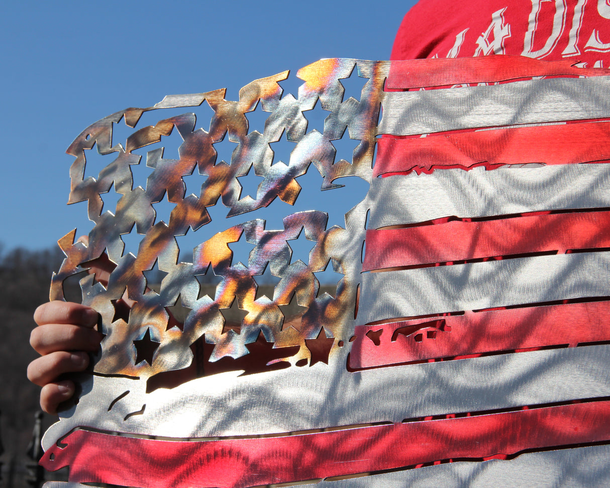 Hand crafted and meticulously made. These Patriotic Art pieces comes in 3 different variations. All of these heavy gauge steel signs will come with one of a kind custom grinding of an awesome 3D affect of the flag waving in the wind. All signs will be clear coated for outdoor protection - Each sign will be different as they are hand made and each having a little artful differences so you know you are getting a one of a kind piece.